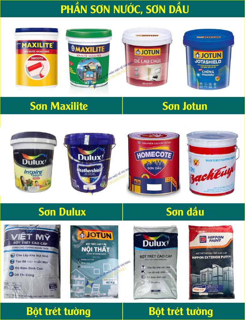 - Trét bả bột ma tít và lăn sơn nước toàn bộ bên trong và bên ngoài nhà.
