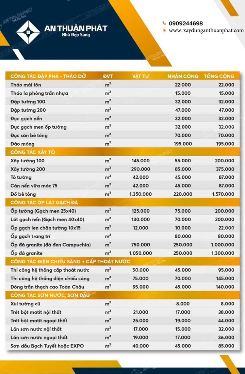 Đơn giá thi công sữa chữa nhà tại công ty An Thuận Phát