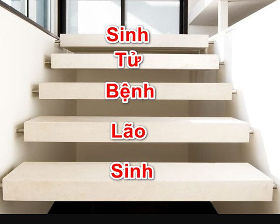 Cách tính bậc cầu thang hợp phong thủy theo quy luật Sinh lão bệnh tử cũng được áp dụng vì nó đơn giản và hiệu quả. Đây là 4 giai đoạn mà con người phải trải qua trong cuộc đời. Sinh là biểu thị cho sự sống và mang lại nhiều nguồn lực dồi dào. Lão biểu thị cho tuổi già và là nguồn năng lượng cạn kiệt. Bệnh tượng trưng cho những điều không may mắn và tử là thể hiện cho cái chết sự u ámCách tính bậc cầu thang theo quy luật này sẽ vẽ biểu thị bậc 1 là sinh, bậc 2 là lão, bậc 3 là bệnh và bậc 4 là tử. Bậc 5 sẽ quay lại là sinh, bậc 6 là lão, bậc 7 là bệnh và bậc 8 là tử. Chính vì lý do đó để tính bậc cầu thang theo phong thủy thì người ta sẽ dựa trên công thức là 4n + 1