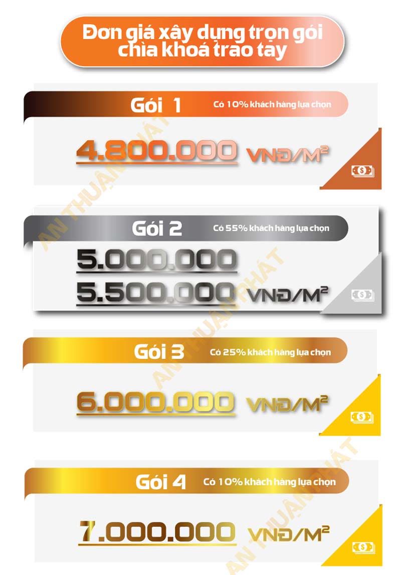 - An Thuận Phát sẽ tư vấn kĩ càng cho quý khách hàng các khoản chi phí để khách hàng kiểm soát được nguồn tài chính của mình. Tránh trường hợp phát sinh các khoản tiền ngoài dự toán.