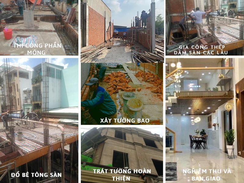 Xây nhà phần thô tại quận 7 bao gồm những công đoạn như:- Thi công phần móng